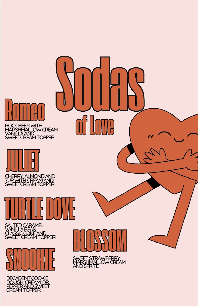 Sodas: This category includes unique handcrafted sodas with names such as Romeo, Juliet, Turtle Dove, and Blossom, providing a variety of refreshing options beyond traditional soft drinks.